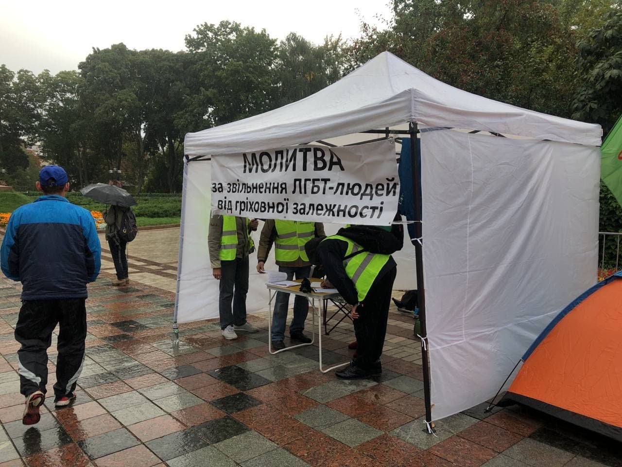 09:25 Националисты призывают в специальной палатке помолиться за избавление геев и лесбиянок "от греховной зависимости".