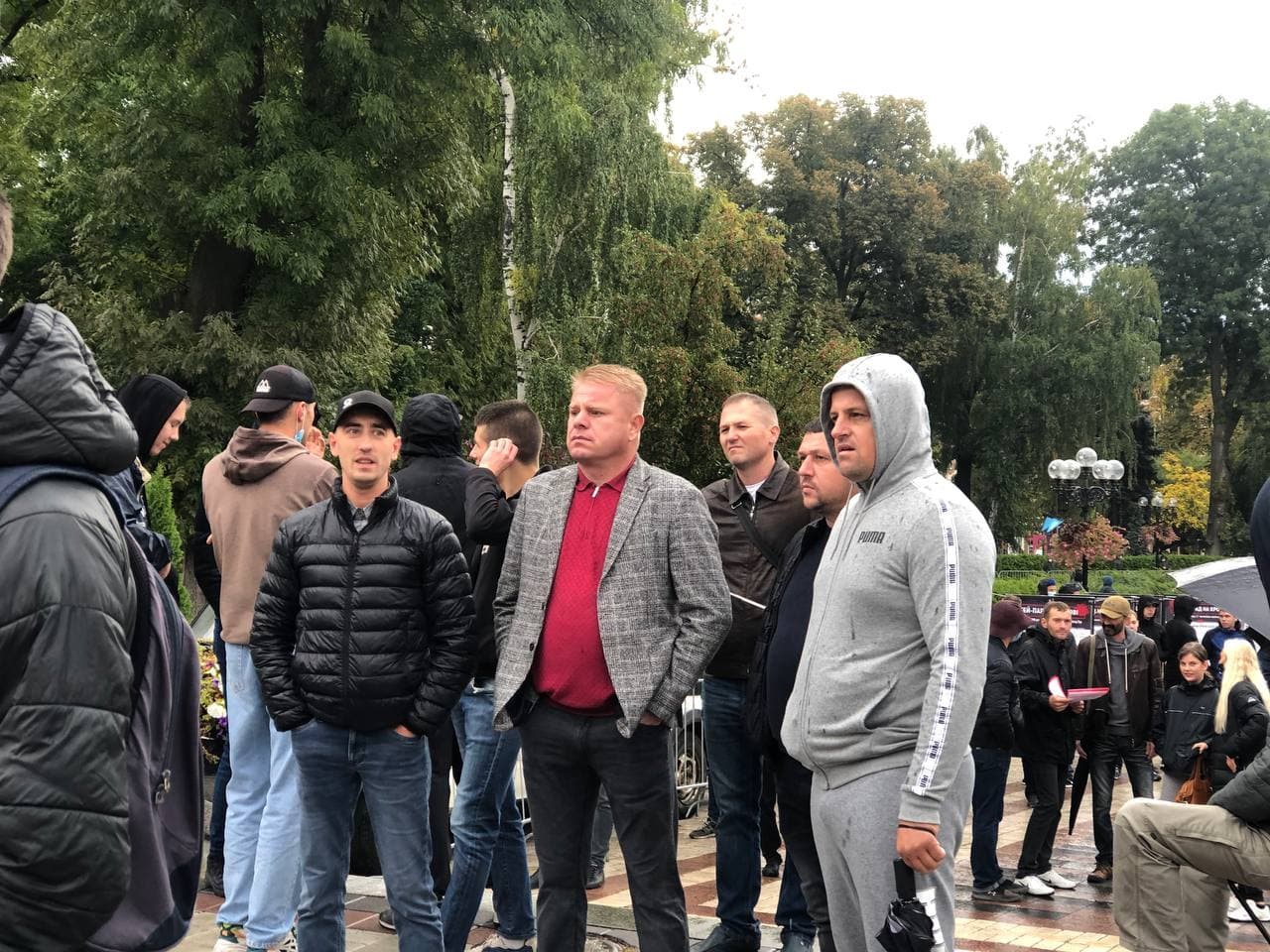 09:21 Националисты в парке Шевченко уже собираются. В акции принимают участие С14, "Правый сектор" и "Христианский фронт". Пришёл и лидер "Братства" Корчинский.