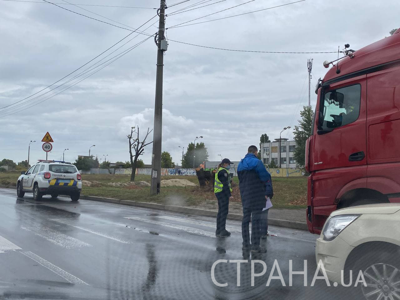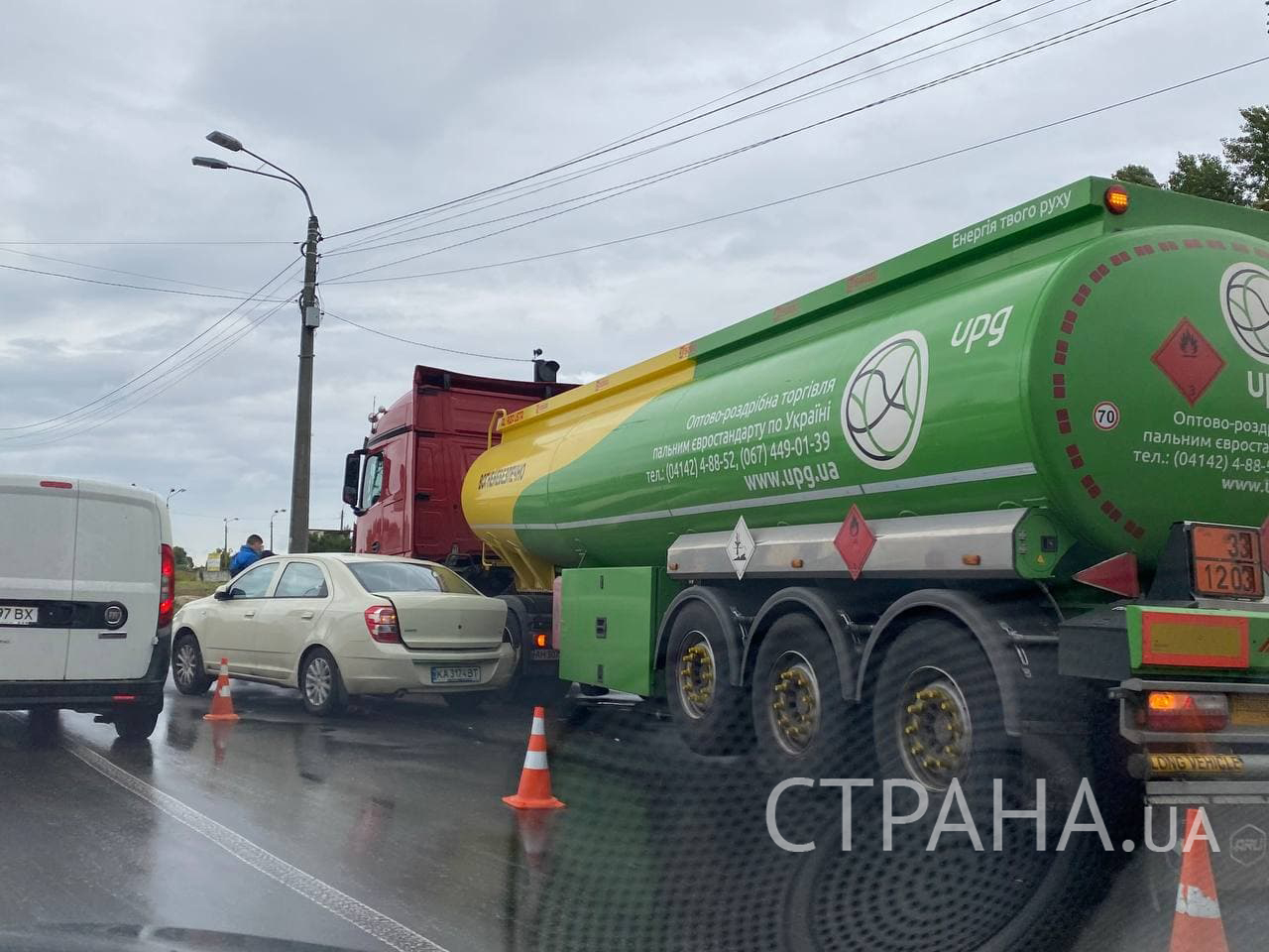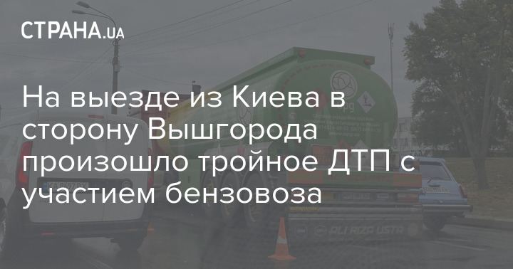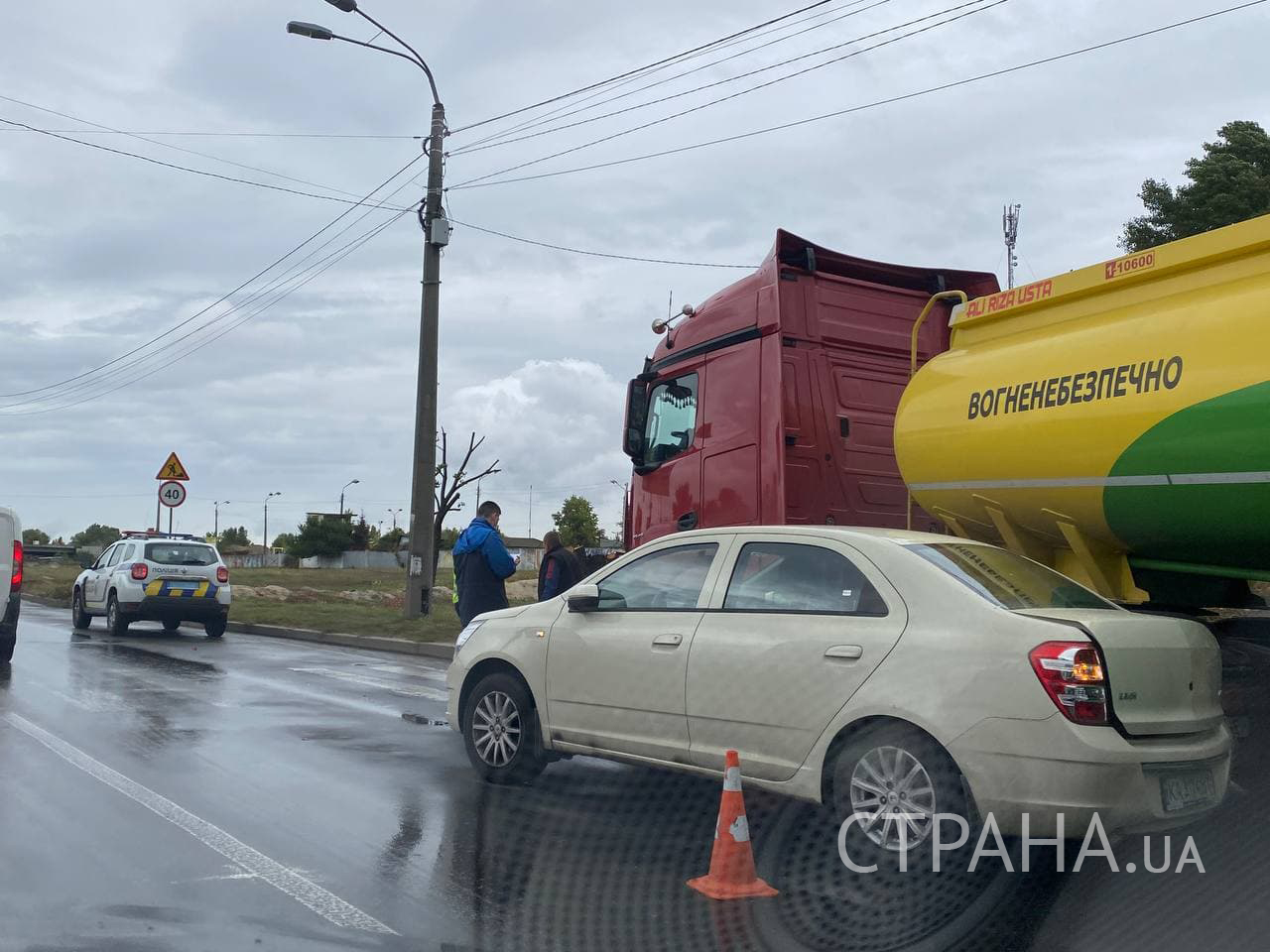 На выезде из Киева в сторону Вышгорода произошло тройное ДТП с участием бензовоза