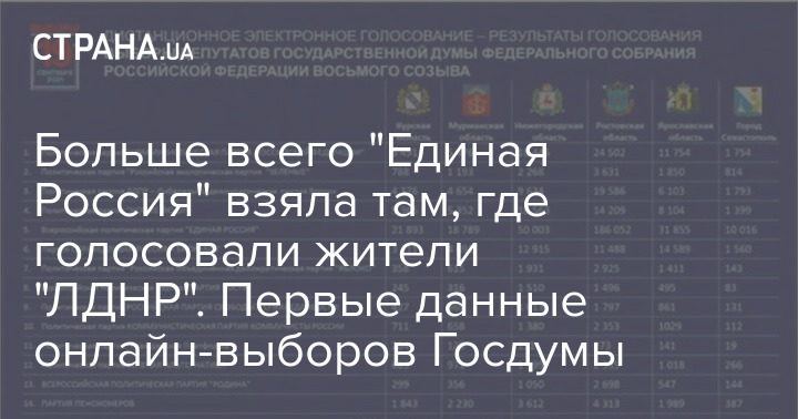 Больше всего "Единая Россия" взяла там, где голосовали жители "ЛДНР". Первые данные онлайн-выборов Госдумы
