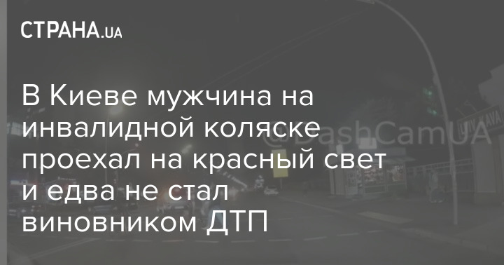 В Киеве мужчина на электрической инвалидной коляске выехал на дорогу, проехал на запрещающий сигнал светофора и едва не стал виновником ДТП.