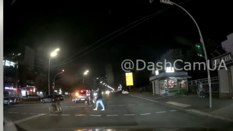 В Киеве мужчина в инвалидной коляске едва не стал виновником ДТП. Источник: Dash Cam Ua/Facebook