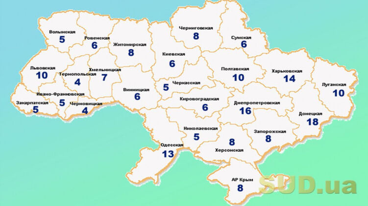 Сколько останется окружных судов в той или иной области по данным Комитета ВР по вопросам правовой политики (данные будут уточняться):