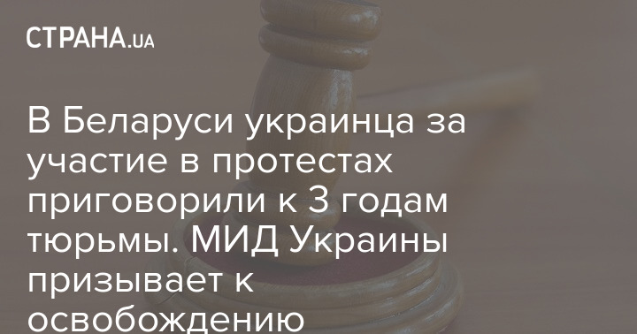 В Беларуси украинца за участие в протестах приговорили к 3 годам тюрьмы. МИД Украины призывает к освобождению