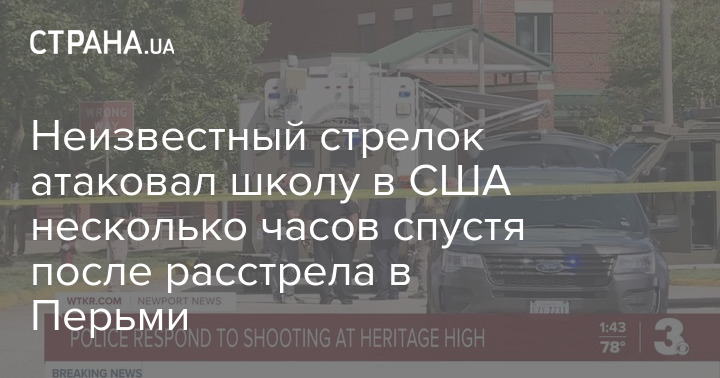 В один день с расстрелом студентов Государственного университета Перми произошла стрельба в школе американского Ньюпорт-Ньюса (штат Вирджиния). Там неизвестный ранил двух человек.
