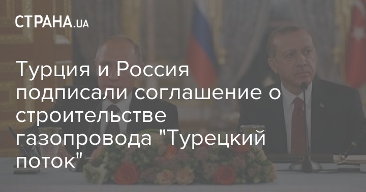Турция и Россия в Стамбуле в присутствии президентов России Владимира Путина и Турции Реджепа Тайипа Эрдогана подписали межправительственное соглашение о строительстве газопровода "Турецкий поток" в обход Украины. Об этом сообщает Hürriyet Daily News.