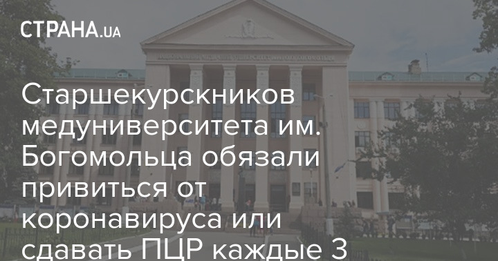 Старшекурскников медуниверситета им. Богомольца обязали привиться от коронавируса или сдавать ПЦР каждые 3 дня
