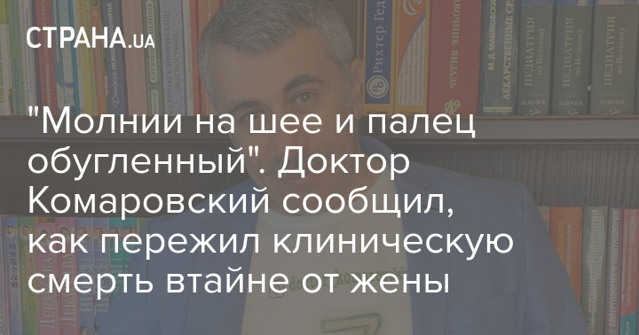 "Меня убило электрической лампой кварцевой в отделении реанимации. Ее замкнуло. Ее надо было подвинуть, а я ее взял. И, когда я падал, убило, она на меня упала, и вырвалась из розетки. Ну и плюс грохот. И это отделение реанимации. То есть здесь же набежала куча реаниматологов, откачали меня, я пришел в себя. А вечером пришел домой, жена говорит: "Тебя током убило?". Я спрашиваю: "Ты откуда знаешь?". А оказывается, у нее были занятия по судебной медицине. А там есть признаки смерти от поражения током. Там такие знаки: молнии на шее, на руках в виде сосудов. А я пришел - у меня были какие-то непонятные молнии на шее и палец обугленный", - рассказал Комаровский.