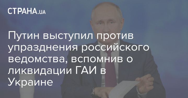 Президент РФ Владимир Путин выступил против упразднения Федеральной службы по надзору в сфере образования и науки (Рособрнадзор). При этом он вспомнил ликвидацию ГАИ в Украине, не называя прямо страну.