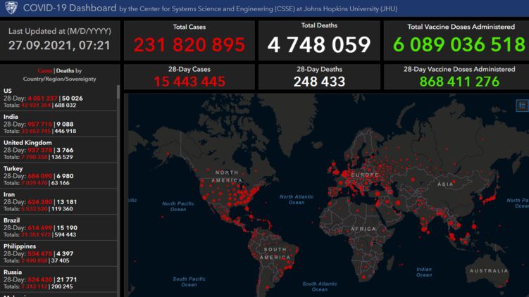 А по данным университета Хопкинса на утро понедельника на Земле уже 231 820 895 зараженных с начала пандемии.