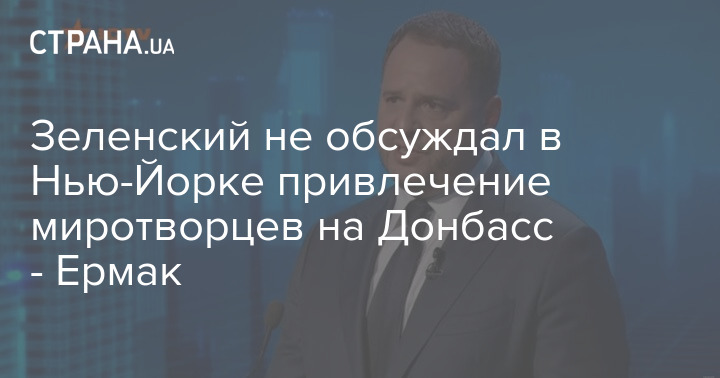 По словам Ермака, во время визита в Нью-Йорк для участия в 76-ой сессии Генеральной ассамблеи ООН президент Владимир Зеленский не обсуждал возможности привлечения миротворческих сил для урегулирования конфликта на Донбассе.