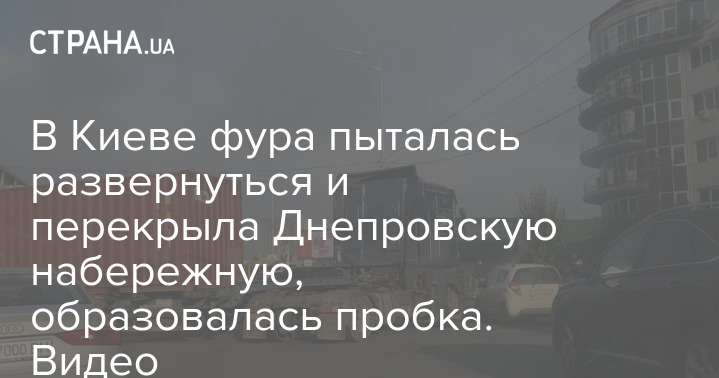 Инцидент произошел около семи утра на Днепровской набережной в Дарницком районе столицы, недалеко от торгово-развлекательного центра River Mall. Водитель фуры пытался развернуться, но застрял посередине дороги и заблокировал три полосы движения, что привело к образованию пробки.
