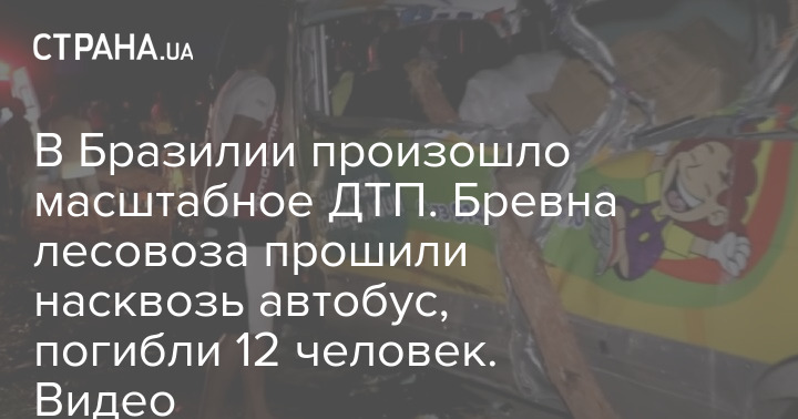 В Бразилии произошло страшное ДТП, в результате которого бревна лесовоза прошли насквозь автобус с пассажирами. По меньшей мере 12 человек погибли в результате аварии. Водитель грузовика скрылся с места ДТП.