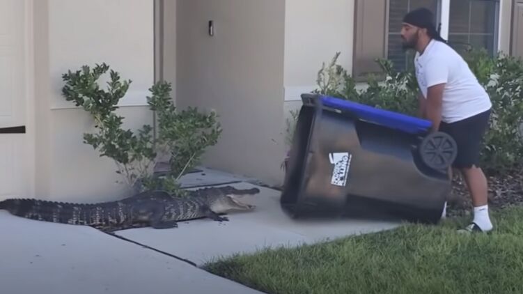 В США бывший военный 26-летний Юджин Боззи всего за пару минут выдворил аллигатора из двора собственного дома. Причем мужчина пошел на хищника, вооружившись лишь мусорным контейнером.