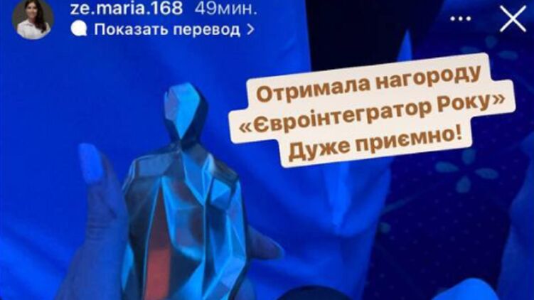 "Евроинтегратор года" Мария Мезенцева показала свою статуэтку, фото соцсети