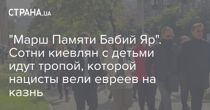 В Киеве сейчас проходит "Марш Памяти Бабий Яр". Сотни людей (многие пришли с детьми - Ред.) идут колонной от кинотеатра "Киевская Русь" к мемориалу Меноры в Бабьем Яру, где будет прочитана поминальная молитва. Именно этим путем 29 и 30 сентября 1941 года прошли киевские евреи, которых немецкие захватчики отправили на уничтожение во время Второй мировой войны.