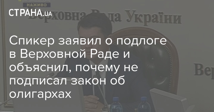 Спикер заявил о подлоге в Верховной Раде и объяснил, почему не подписал закон об олигархах