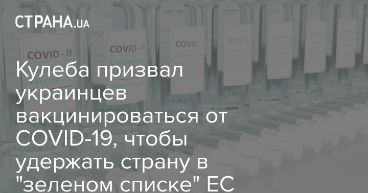 Кулеба призвал украинцев вакцинироваться от COVID-19, чтобы удержать страну в "зеленом списке" ЕС
