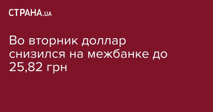 Во вторник доллар снизился на межбанке до 25,82 грн