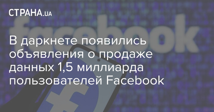 в даркнете сейчас продают данные 1,5 млрд пользователей Facebook