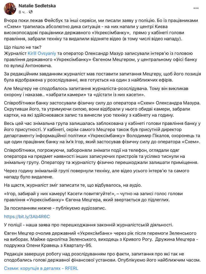 Более объемный пост опубликовал и "Укрэксимбанк" на своей странице. Там уже, по сути, опубликовали свою версию того, что случилось