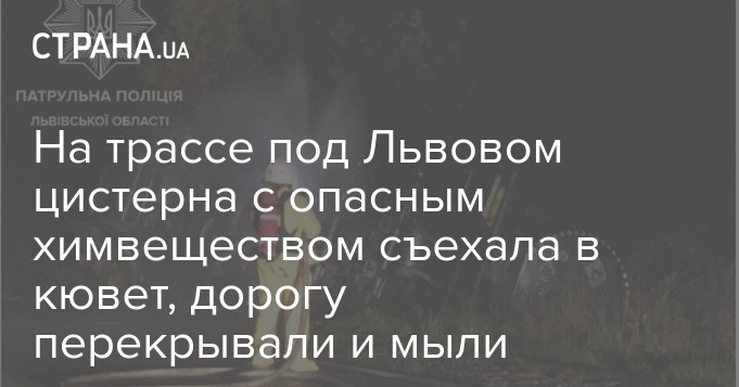 На трассе под Львовом цистерна с опасным химвеществом съехала в кювет, дорогу перекрывали и мыли