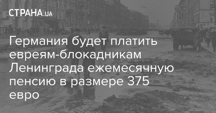 Правительство Германии 6 октября решило выплачивать пережившим блокаду Ленинграда евреям ежемесячную пенсию в размере 375 евро. Пенсию получат около 6500 человек, среди которых не только блокадники, но и люди, сумевшие избежать от нацистского террора во Франции и Румынии.