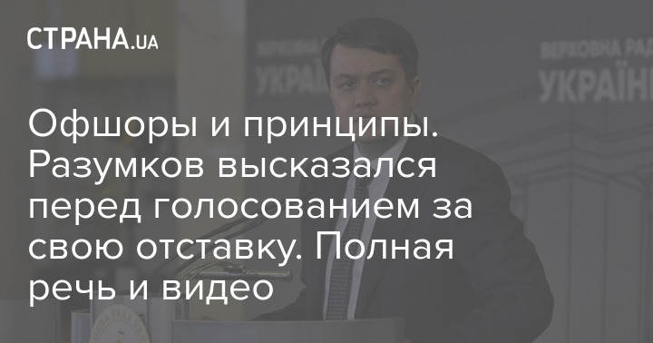 Офшоры и принципы. Разумков высказался перед голосованием за свою отставку. Полная речь и видео