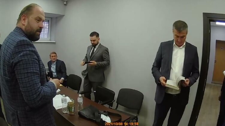 На кадрах видно, как сотрудники ГПУ пришли в ГБР и попытались предъявить Медведчуку новое подозрение в государственной измене и содействии терроризму.