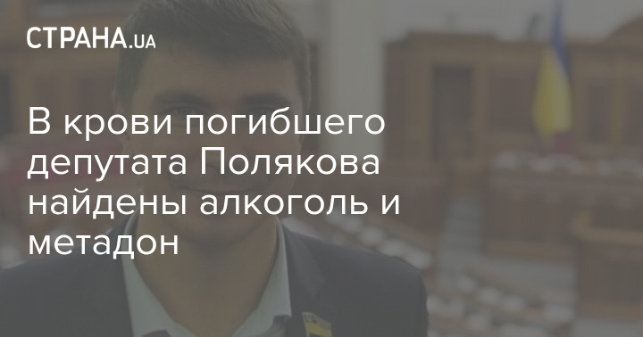 Народный депутат фракции "Слуга народа" Галина Янченко сообщила, что у скончавшегося народного депутата Антона Полякова токсикологи нашли в крови алкоголь и метадон.