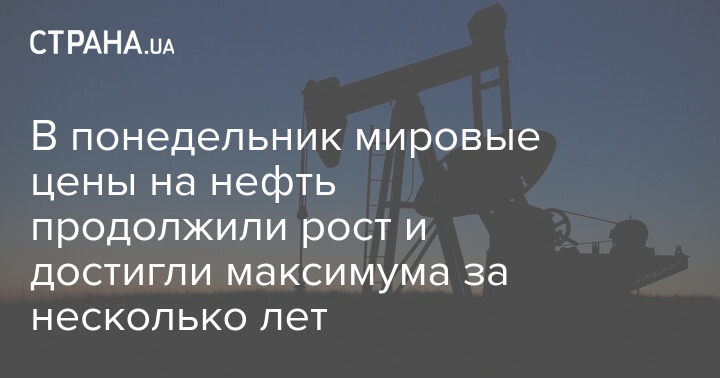 В понедельник мировые цены на нефть продолжили рост и достигли максимума за несколько лет