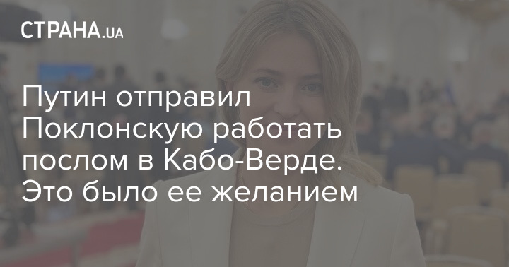 Президент РФ Владимир Путин назначил бывшего прокурора Крыма и экс-депутата Госдумы Наталью Поклонскую послом в Кабо-Верде (государство, расположенное на островах Зелёного мыса около побережья Африки).