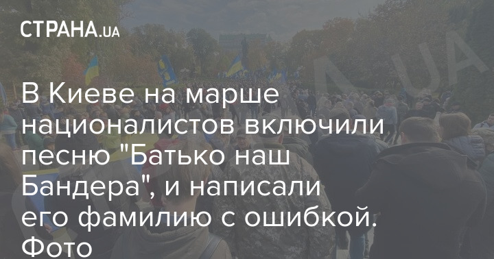 В Киеве на марше националистов включили песню "Батько наш Бандера", и написали его фамилию с ошибкой. Фото