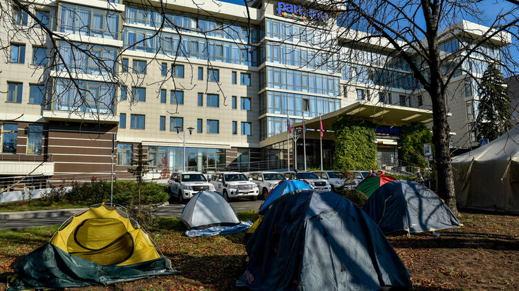У штаб-квартиры ОБСЕ появился палаточный городок. Фото: ДАН