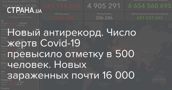 Новый антирекорд. Число жертв Covid-19 превысило отметку в 500 человек. Новых зараженных почти 16 000