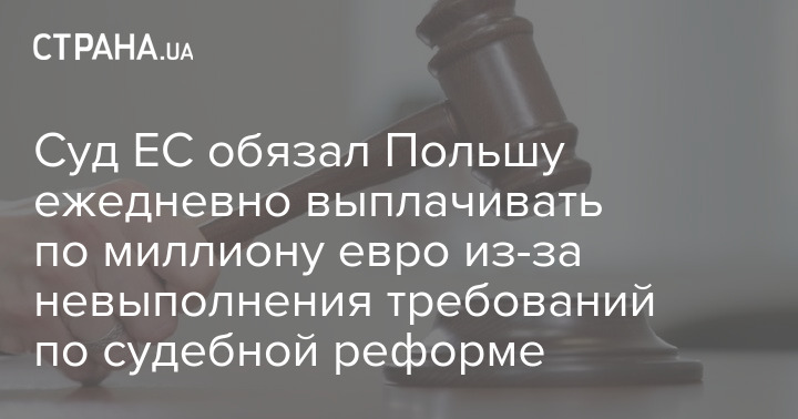 "Своим распоряжением заместитель председателя Суда постановил Польше выплатить штраф в размере 1 000 000 евро в сутки с даты уведомления об указанном постановлении и до тех пор, пока это государство-член не приостановит действие национального законодательства, которое, в частности, относится к юрисдикции Дисциплинарной палаты Верховного суда", - говорится в сообщении.