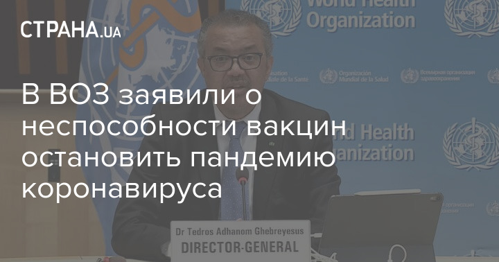 Генеральный директор Всемирной организации здравоохранения (ВОЗ) Тедрос Аданом Гебрейесус констатировал рост в глобальном масштабе заражений коронавирусом и смертей от него впервые за два месяца. Также он заявил, что одни лишь вакцины не смогут остановить пандемию.