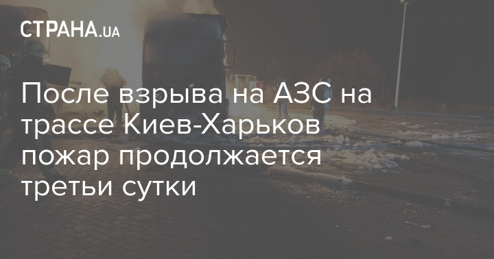 После взрыва на АЗС на трассе Киев-Харьков пожар продолжается третьи сутки