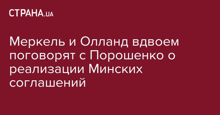 Меркель и Олланд вдвоем поговорят с Порошенко о реализации Минских соглашений