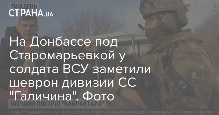 При этом в кадр сюжета попал военнослужащий ВСУ с шевроном дивизии СС "Галичина".