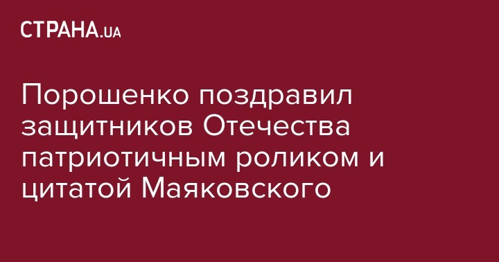 Порошенко поздравил защитников Отечества патриотичным роликом и цитатой Маяковского