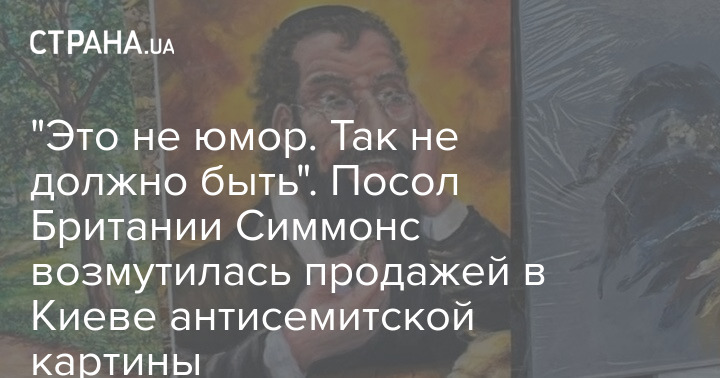 Посол Британии в Украине Мелинда Симмонс возмутилась продажей в Киеве картины с антисемитским сюжетом. Вероятно, полотно было обнаружено дипломатом во время прогулки по украинской столице.