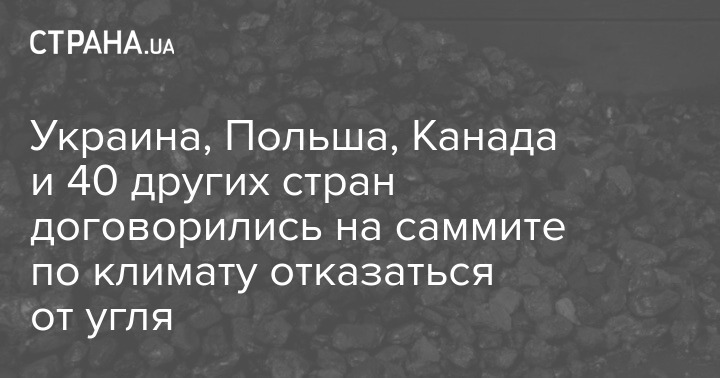 На саммите ООН по климату в Шотландии более 40 стран договорились отказаться от использования угля как топлива. Среди таких государств - Украина, Польша, Канада, Вьетнам и другие.