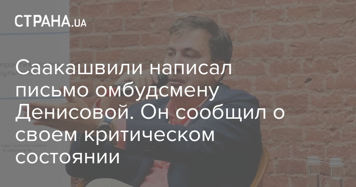 Уполномоченная Верховной рады по правам человека Людмила Денисова получила письмо от экс-президента Грузии Михаила Саакашвили, в котором он сообщает, о критическом состоянии своего здоровья и недавних неудовлетворительных результатах анализов.