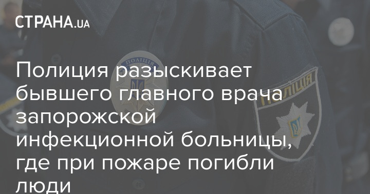 Бывшему главному врачу областной инфекционной больницы Запорожья, где в феврале произошел пожар, инкриминируют нарушение правил безопасности, повлекшее гибель людей. В полиции информируют, что мужчина находится в розыске.