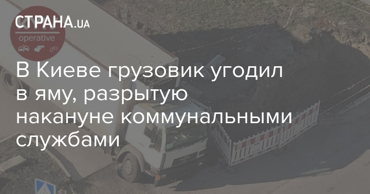 В Киеве грузовик угодил в яму, разрытую накануне коммунальными службами