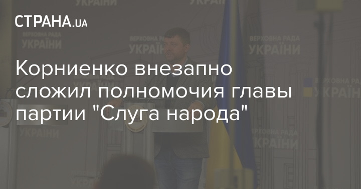 Глава партии "Слуга народа" и первый вице-спикер Рады Александр Корниенко сложил с себя полномочия руководителя политсилы. Он заявил, что на ближайшем съезде "слуг" (он состоится в ноябре) изберут его преемника.