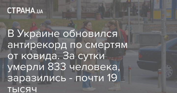 В Украине за прошлые сутки коронавирусом заразились 18 988 человек. 833 пациента с Covid-19 умерли. Это новый антирекорд по летальным случаям болезни за сутки. Предыдущий фиксировали 6 ноября, когда сообщалось о 793 смертях