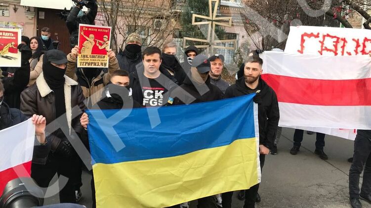 Под посольством Беларуси в Киеве националисты провели митинг из-за мигрантов на границе с Польшей. Фото, видео
