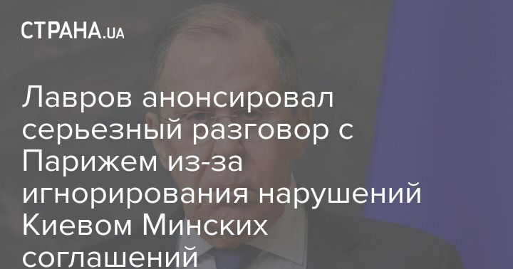 Глава Министерства иностранных дел (МИД) Российской Федерации Сергей Лавров заявил, что 12 ноября Франции не удастся избежать "серьезного разговора" об Украине. По его словам, именно при попустительстве Парижа и Берлина Украина игнорирует выполнение "Минских соглашений".